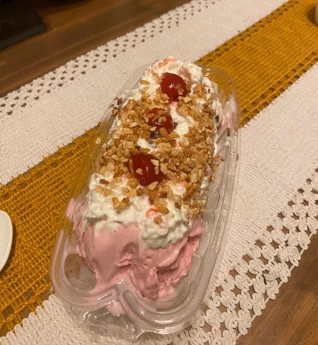 - Banana Split - Indulge in this classic, complete with three scoops of your favorite flavors, whipped cream, and toppings for $10.00.